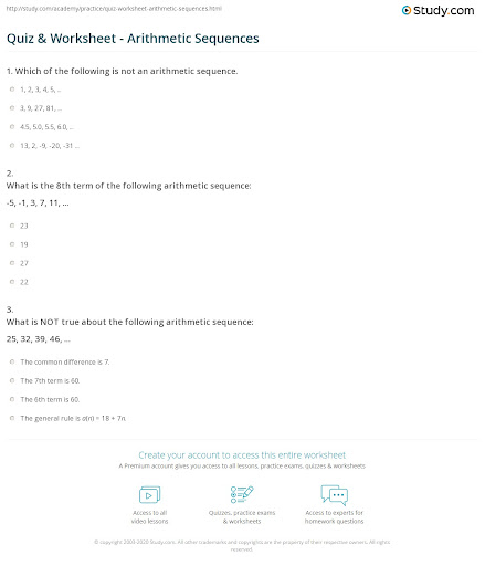 Amazing Quiz Worksheet Arithmetic Sequences Study.com