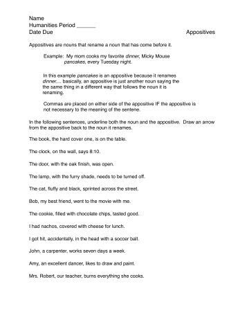 Awesome Appositives Worksheets Free Middle School. Appositives. Best Free Printable Worksheets